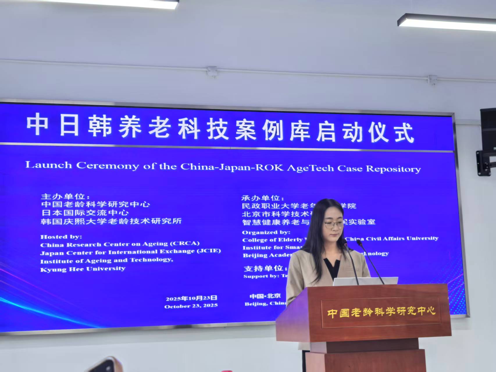 日本国际交流中心项目官员阿部桃子、韩国庆熙大学老龄技术研究所学术研究教授尹熙静代表发起单位出席了启动仪式,两位专家表示,相信通过中日韩养老科技案例库这一方式深化合作,将助力建设可持续性、包容性的亚洲老龄化社会。